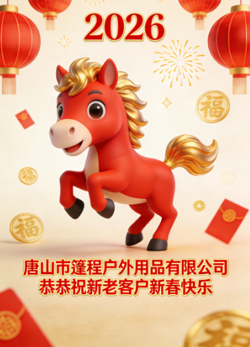 駿馬踏春開新局,奔赴山海向新程。值此 2026 農(nóng)歷馬年新春佳節(jié)來臨之際,唐山市篷程戶外用品有限公司全體員工,向一路相伴的新老客戶,致以最誠摯的新春問候與最美好的節(jié)日祝愿!